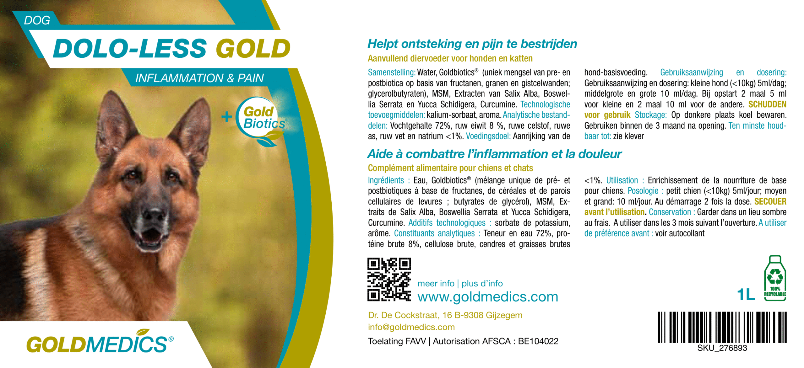And further: DOLO-LESS GOLD for Dogs is in liquid form, which benefits use and absorbability.
